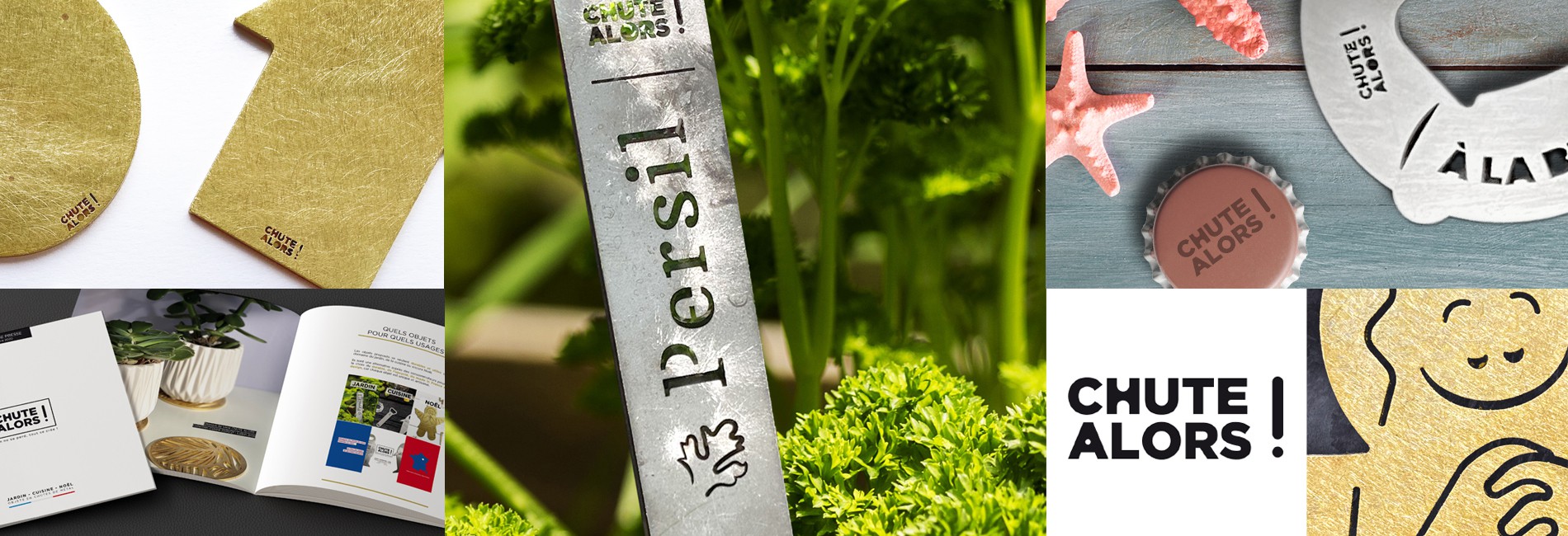 Ce nom d’entreprise, trouvé à la suite d’un brainstorming, colle complètement à l’esprit joyeux de la marque et à son concept : valoriser des chutes de métal pour en faire des objets rigolos et durables. Une identité visuelle simple et efficace a été choisie pour ce projet écoresponsable.